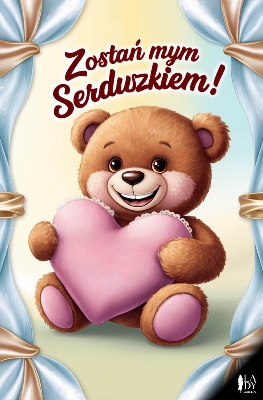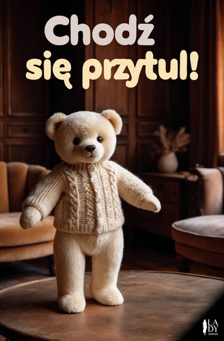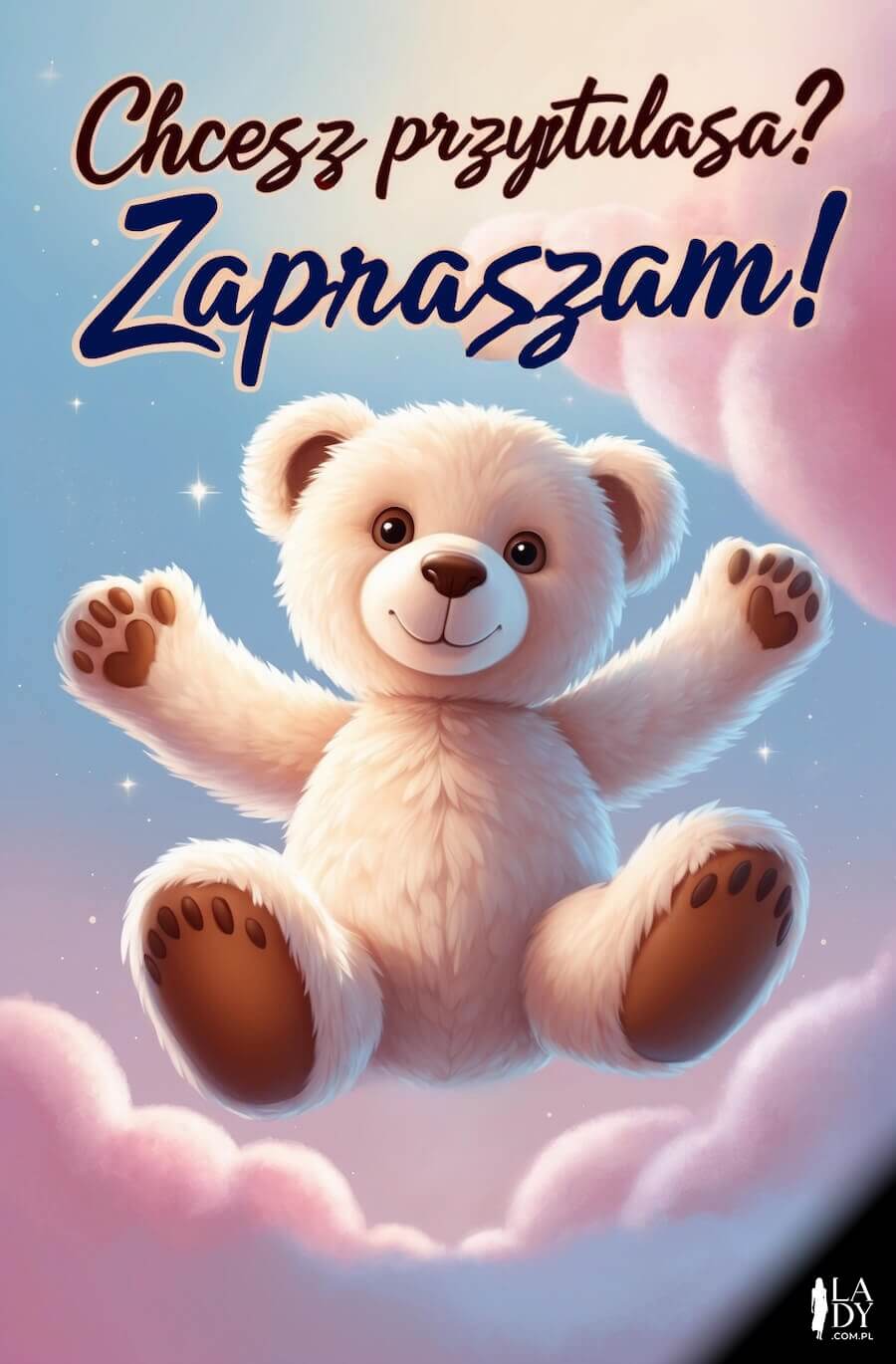 Urocza kartka z pluszowym misiem, który chce się przytulić