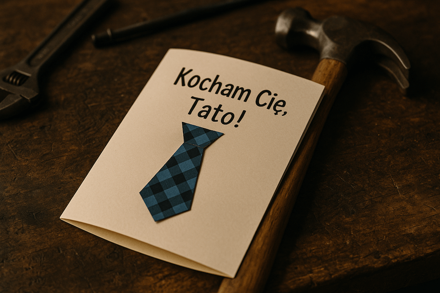 Aby kartka była bardziej osobista, warto dodać imię taty na froncie i jedno zdanie od serca.