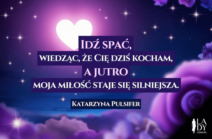 - „Idź spać, wiedząc, że cię dziś kocham, a jutro moja miłość staje się silniejsza. Dobranoc!” – Katarzyna Pulsifer