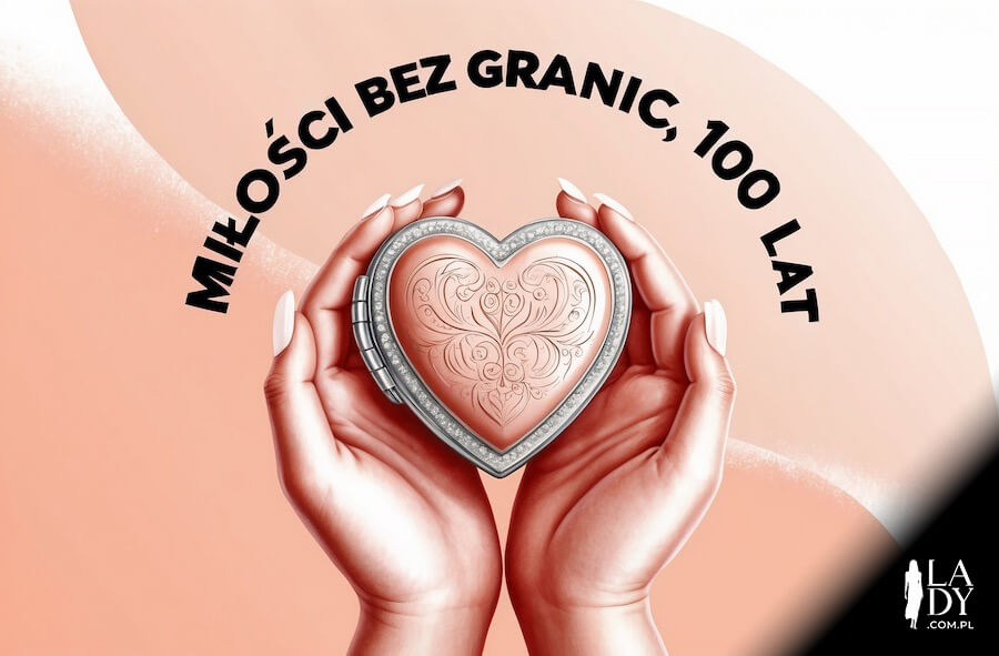 Serce trzymane w dłoniach, z życzeniami: Miłości bez granic, 100 lat