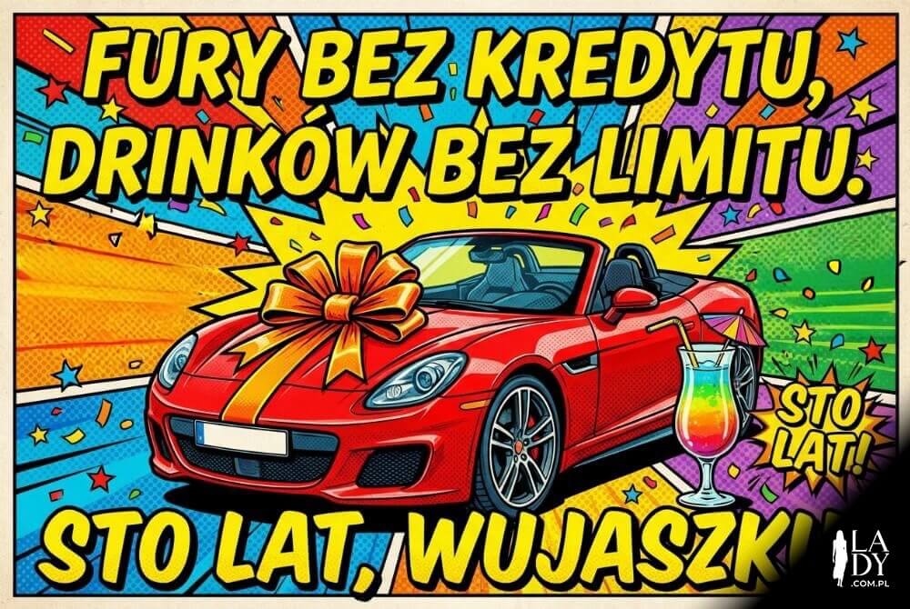 • Z okazji urodzin życzę Ci: fury bez kredytu, drinków bez limitu, meczy wygranych i podróży udanych. Niech Cię omija ZUS i podatki, a życie smakuje jak najlepsze czekoladki. Sto lat, Wujaszku!