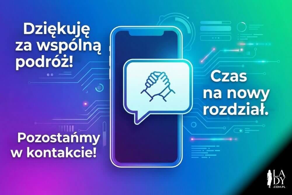 - „Dziękuję za wspólną podróż! Czas na nowy rozdział. Pozostańmy w kontakcie!”