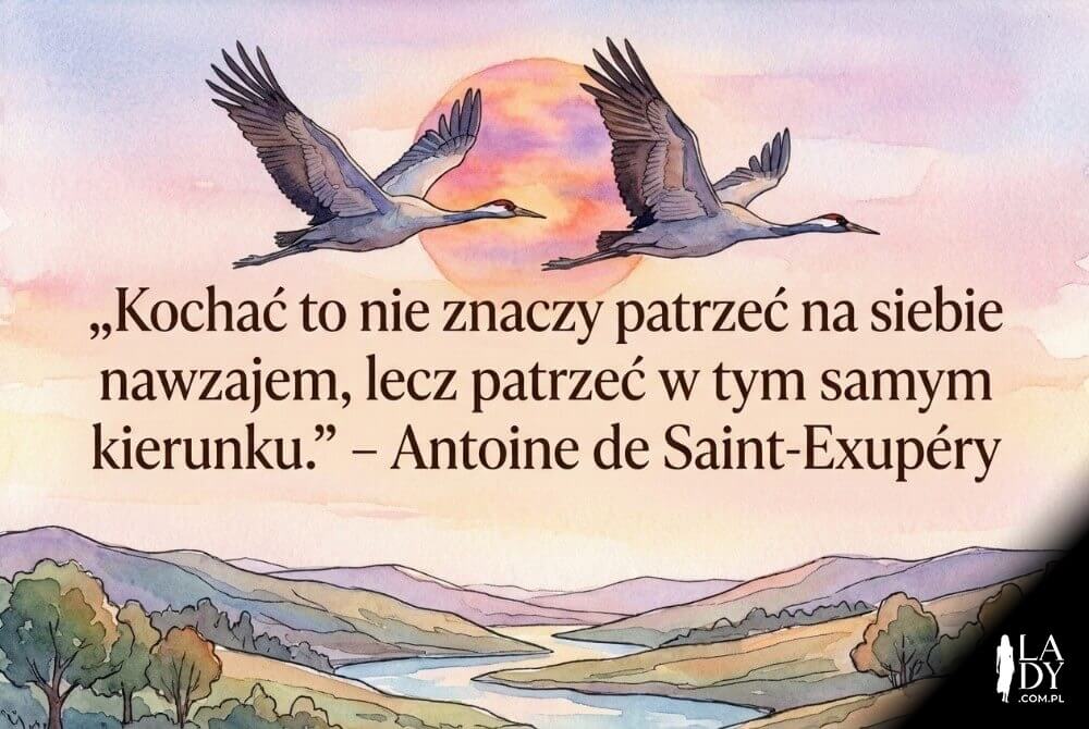 • „Kochać to nie znaczy patrzeć na siebie nawzajem, lecz patrzeć w tym samym kierunku.” – Antoine de Saint-Exupéry